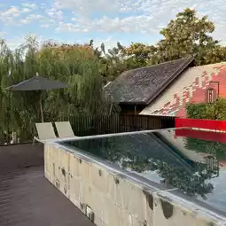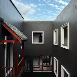 Hotel Ping Silhouette is a contemporary Chinese-style boutique hotel with a Lanna feel. It's not very big and is located in the Wat Ket area. The location is very good. It's both peaceful and has a great atmosphere because it's on the Ping River. I said it's not big because it has only 3 floors, but there are still green spaces in various areas. 🌿 And it's a very nice riverside lawn. The front of the building is white, but when you enter, it's very cool black. It gives off an Art gallery feel. 🎨 There's a goldfish pond in the middle. The interior facade is very prominent. There are holes to open and use geometric frames. The white color contrasts with the black building color, which is very beautiful. I must say that there are many corners to take pictures. 📸 There is a pond on the 2nd floor. It's an outdoor type with a view of the Ping River. The sunset and sunrise in the morning are very beautiful. 🌥 And when I went, the morning temperature was 20 degrees. It was so cool. There's also a cafe here. And the staff is good service, very smiling. The hotel is clean.