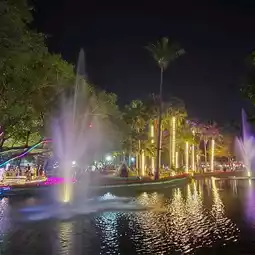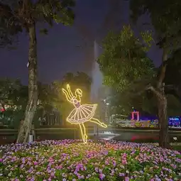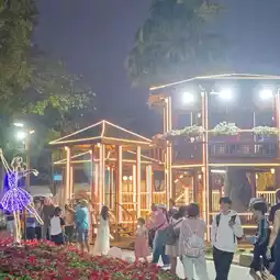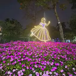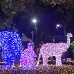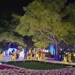 😍 The event is decorated with beautiful lights and there will be a flower car contest on February 8, 2025. There are various activities such as food, music performances, and OTOP product booths.