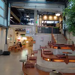 It is a community mall that has everything in one place, from restaurants, bars, workshop areas, to areas for people to come and chill as if they were at a friend's house. It is designed as a free space and they also give customers the freedom to sit as they please. Simply put, you can buy food and drinks from any shop and then take them to eat anywhere in the area. There is no limit on which shop you buy from and you have to sit there. If you want to buy coffee and work all day, you can do that too. Or if you want to buy some easy food to sit and eat while chatting with friends, you can do that too.