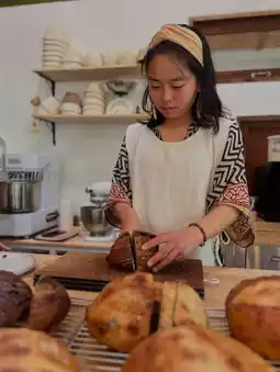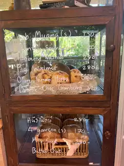 A shop open only 4 days a week in the Wat Umong area, "Artisan sourdough by apple fahey", a shop with a shady atmosphere under the trees, simple, warm, comfortable. The shop also has workshops. You can follow the page.