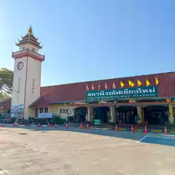 📍Chiang Mai Railway Station is located on Charoen Muang Road, right on the main road. It is noticeable. There is an old steam train and a clock tower as symbols.