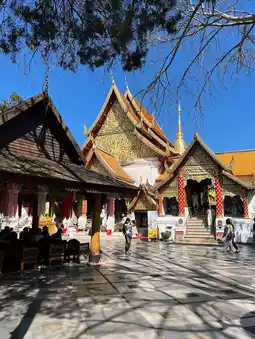 Wat Phra That Doi Suthep is a breathtaking temple perched on Doi Suthep mountain, overlooking Chiang Mai. This sacred site, which dates back to the 14th century, is famous for its stunning golden chedi that glimmers in the sunlight, creating a mesmerizing sight. The journey to the temple involves a winding road adorned with lush greenery, and upon arrival, visitors are greeted by a magnificent staircase flanked by intricately designed Naga serpents. The panoramic views of Chiang Mai from the temple are simply unforgettable, adding to the spiritual experience. Inside, the vibrant murals and the serene ambiance invite contemplation and reflection. The temple is not only a significant pilgrimage site but also a beautiful representation of Lanna culture and architecture. Overall, visiting Wat Phra That Doi Suthep is a must for anyone seeking a blend of natural beauty, spiritual serenity, and cultural richness.