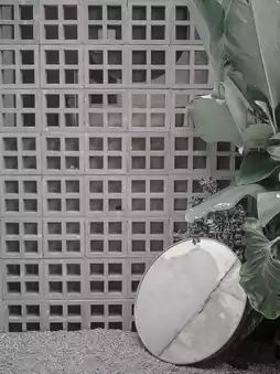 A cool cafe decorated in a raw style, exposed concrete