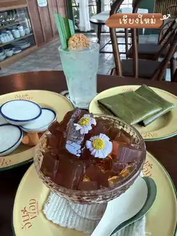 KRISP Café, a café that is not called a café but is called “Ploy Chidjun Café” 5555 It is a café with a lot of desserts to choose from. There is also a lot of parking. There are also art exhibits in the shop. There are also many photo spots. The shop opens from 09.30-18.00 hrs. There is a lot of parking.