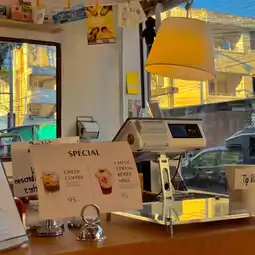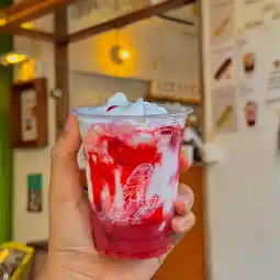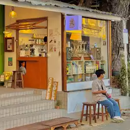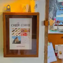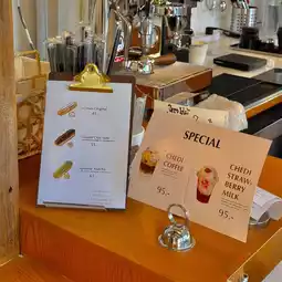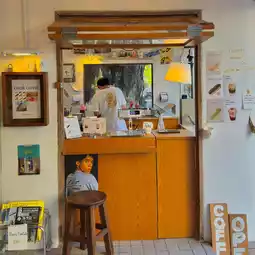 It is a small minimalist cafe full of cuteness. The atmosphere of the shop is warm and very Japanese. Sit and relax with a drink and enjoy the view of Wat Chedi Luang from the corner of the shop. It's so great. 🤍🫶🏻