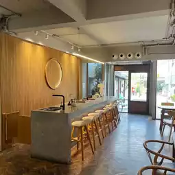 Transit No.8 is a cute Japanese-concept cafe in a village. Starting from the bus stop, Japanese subway, there are many cool photo spots here even before entering the shop. Outside, there is a tunnel like a Japanese subway, a zebra crossing, a bus stop, and a photo booth where you can take photos. This cafe has many photo spots. In addition to the outdoor area, the air-conditioned room is divided into two zones. One zone is decorated in a minimalist style with a Japanese feel, using light-colored wooden furniture. Downstairs, there is a green tea counter. The other side is decorated like an airport, using black and white tones. There is a staircase leading up to the second floor, making beautiful photos. You can choose the type of green tea leaves. Outside, there is also a soft-serve ice cream shop. I ordered two-tone ice cream and it was delicious. First, when you arrive at the shop, there is an entrance fee of 50 baht per person. You can use the coupon to exchange for drinks at the shop. There are many drinks to choose from. Good work, both coffee and green tea. Come here, it's worth it, worth the time. ⏰ Open daily from 08.00 - 23.00 hrs.