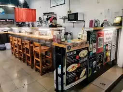 The ambiance of the shop is designed to make you feel like you're dining in Japan. You can sit around the counter, order, and eat right there, or opt for outdoor seating around the project area for a different vibe.