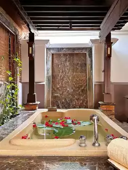 The resort area of Shangri-La Hotel, Chiang Mai is not small. It has a swimming pool, children's play area, and slides, and even a small garden. The SPA center is nestled among lush trees. When staying at Shangri-La, you definitely can't miss a relaxing SPA treatment in a small villa with its own courtyard. There is also a bathtub with a small waterfall and running water outdoors. The environment is very good! 30 minutes of body scrub + 90 minutes of classic Lanna essential oil massage is probably the most cost-effective SPA in Chiang Mai's luxury hotels. Highly recommended!