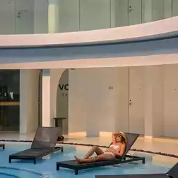 The hotel has a unique design. The building is in a circle. The highlight is the swimming pool in the middle of the hotel. It's very beautiful to take pictures.
