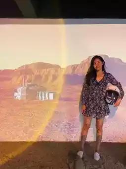 MARS.cnx has a distinctive and unique decoration, mainly based on the theme of space and Mars. Inside the shop, the environment of Mars is simulated with red-orange stone walls and lights that create an atmosphere like being in a spaceship or other planets. There are also various photo spots, such as a simulated cave corner and a projection of the moon and the galaxy on the wall.