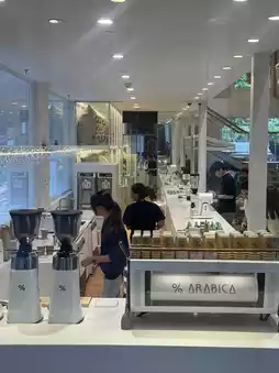 % ARABICA, a world-famous Japanese coffee shop. For the Chiang Mai branch, it is decorated in white-brown tones, clean in the style of Japanese shops, giving a comfortable feeling while sipping coffee.