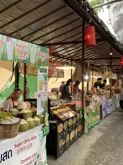 If you love exploring charming markets with a chic and unique vibe, then "Kad Ba Paw Market" in Chiang Mai is a must-visit spot. Every time you come here, you'll be greeted with an adorable atmosphere that makes strolling around a delightful experience. The market features a variety of cute products and numerous food stalls offering delicious treats, making it a perfect place to shop, eat, and enjoy. Once you visit, you'll likely want to return every week! It's a favorite destination for both Thai and international tourists.