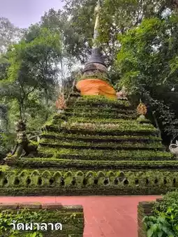 Wat Phalat, Chiang Mai Province, is an original temple in the Lanna period. It has beautiful Burmese architecture. It has a shady and very quiet atmosphere. The temple is surrounded by natural forest. There are the sounds of birds, wild animals, and the distant sound of Phalat waterfall, which is very relaxing.