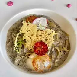 Perfectly cooked pasta tossed in a rich cream sauce, topped with crispy bacon and Parmesan cheese—deliciously aromatic without being overly heavy.