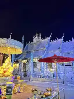 This is a walking masterpiece. The entire temple, including the ordination hall, structure, and intricate designs, is adorned with silver and aluminum. It’s both mystical and cool! At night, the illuminated temple is even more spectacular, and the activity of striking the giant gong to make wishes adds to the charm. This temple is a full glam experience for spiritual seekers.