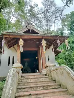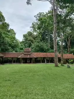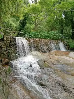 The temple is shady and the air is cool and comfortable. Hear the sound of water flowing down from the top of the mountain. The trees are pleasing to the eyes with greenery.