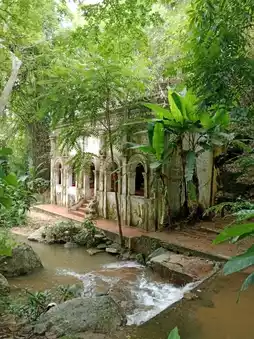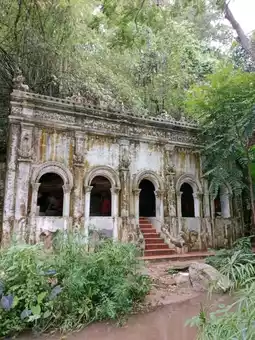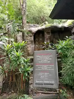 Currently, only the brickwork is visible next to the stream. At the base of the principal Buddha image, a pavilion has been built to cover it, but the Buddha's pedestal can still be seen. The temple is currently renovating the area to make it a place for meditation.