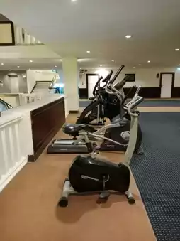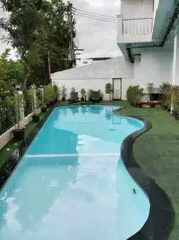 The lobby area is spacious, with various seating spots to wait comfortably, along with cute photo corners. There’s also a swimming pool for exercise. On the second floor, there’s a fitness area with equipment available. Just step out of your room, and you can start working out right away.