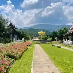 A very shady tourist attraction in Chiang Mai, suitable for all ages. Inside, there is an international botanical garden, an orchid house, and a beautiful Lanna-style wooden building called “Hor Kham Luang”. 🏯