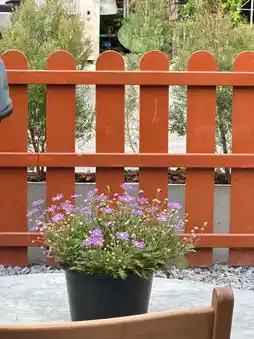 • Shop front by the wooden door – Very beautiful, cozy garden cafe feel 🌿