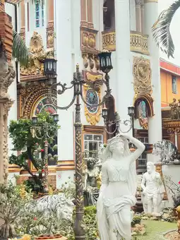 A luxurious French castle-style cafe in the heart of Chiang Mai! This is a paradise for photographers because it has beautiful gardens, fountains, and a magnificent European-style cafe corner. Walking around and taking pictures is like visiting a real palace. 📸🌿