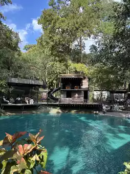 - No.39 Cafe is a magical forest-themed cafe surrounded by trees. You can enjoy a refreshing mango frappe and shrimp pasta while gazing at the emerald-colored lake. When sunlight hits, the lake sparkles in even more beautiful hues, contrasting with the bright blue sky for a stunning view. Every photo taken here turns out amazing. Around the lake, you'll find charming swings, a DJ booth, and a whimsical two-story house with a slide that looks straight out of a fairy tale—perfect for capturing unique shots. If you love taking photos and want the perfect Instagram-worthy shot, this is the place to be.