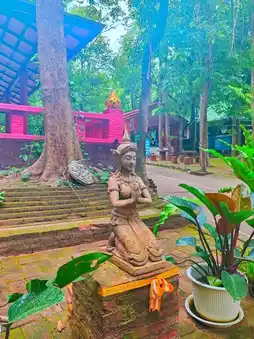 Hello everyone! Today, Mae Auan invites you to visit Wat Umong in Chiang Mai during the rainy season. One of the advantages of visiting Chiang Mai during this time is that there are fewer tourists, and the PM dust levels are also reduced. Wat Umong is famous for its ancient tunnels made of bricks. Additionally, the temple grounds are lush and filled with clean, green scenery, making it a very serene place to visit.