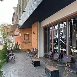 • The shop is decorated in a modern style with a Korean style vibe. There are both air-conditioned cool zones and outdoor zones (smoking allowed) with a corner to sit and enjoy the view of the bustling Sam Kasat Walking Street.