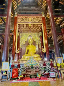 I had the opportunity to visit Wat Phan Tao, which is located not far from Wat Chedi Luang in the heart of Chiang Mai's moat. When I entered, I saw that the atmosphere of this temple is different from other temples because the entire building is made of teak wood, giving a warm and solemn feeling at the same time.