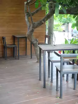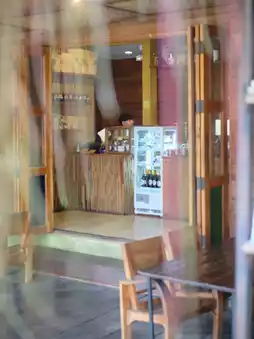 The shop has dark tones. I recommend sitting outside to enjoy the breeze.