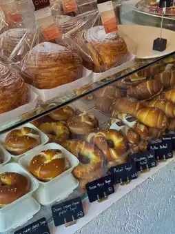 The shop owner is a real Korean, so the bread menu is a mix of Korean and French. We like that they have a lot of menus to choose from. Each menu looks very delicious. We ordered the Onion cream cheese pretzel bagel to try. It tasted very delicious. The bagel was good. It was very delicious.