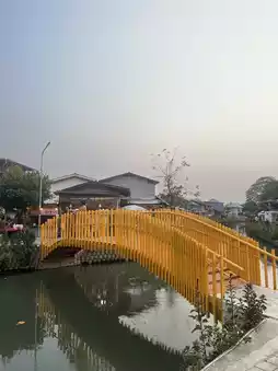 On both sides of the canal, there is a cool brick walkway with a wooden bridge in striking yellow for taking pictures. Decorative lights, Japanese lanterns, and Lanna lanterns are lined up beautifully. Especially in the evening until night, the atmosphere is super chill. When the sun is out and the weather is cool, walk around and take pictures. Stop by a cafe, have a drink, eat some snacks, and sit and chill and watch cats walk by. Those who like to chill or take pictures, you really shouldn't miss this. 📸