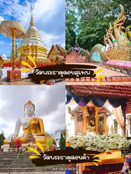 Chiang Mai is here. A short trip to worship Buddha, starting at Wat Phra That Doi Suthep, go with faith, knees must be ready, continue to worship the sacred things at Wat Phra That Doi Kham, especially to ask for blessings from Luang Pho Than Chai. As for Wat Chedi Luang Worawihan or Wat Chotikaram, an old royal temple, inside enshrines the principal Buddha image, Phra Atthasapang Prasat Aphai, according to the art of early Chiang Mai influenced by Pala art. Another temple is Wat Phra Singh Worawihan, inside there is Phra Singh or Phra Buddha Sihing, which is an ancient Buddha image in the ancient Chiang Saen art, in the Mara-Vijaya posture, cross-legged, built in 700 B.E. and Wat Chiang Man, which has 2 Viharas. Next is Wat Sampao, an old temple built during the Mangrai dynasty. As for Wat Umong, it is an ancient temple covered with moss and the tunnel is a wall inside with many walkways that can pass through. And don't miss Tha Phae Gate. If you don't come, it's like you haven't been to Chiang Mai. Let's continue to Wat Lok Moli, which is beautiful and delicate. There are sculptures of angels decorating the corners of the pagoda, the royal temple, and finally Wat Suan Dok or Wat Buppharam. Inside this temple, there are many ancient and beautiful religious sites and objects. Chiang Mai is considered a city full of charm, both nature, arts, culture, and lovely people. Most importantly, there is a lot of northern food. This trip was very impressive. I must come back for sure! #VisitChiangMai #ChiangMaiAttractions #TravelWithTrip #ReviewChiangMai