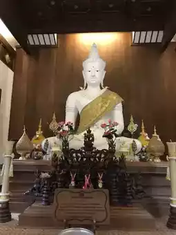 The path to the temple is surrounded by large trees and the sound of soft waterfalls makes you feel like you have entered another world. The temple has ancient Lanna art mixed with a Zen atmosphere.