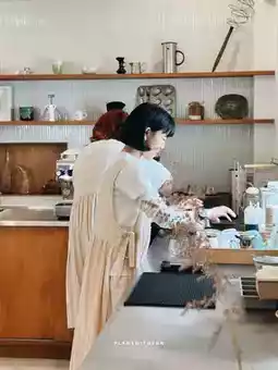 A homey-style homemade donut cafe in a small house with a warm atmosphere, perfect for chilling out, sipping coffee with homemade donuts.
