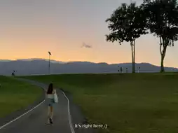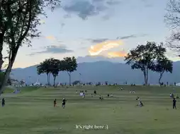 📷 Recommended angle: Looking back from the white fence, you can see mountains and groups of people sitting on the lawn. It feels very warm!