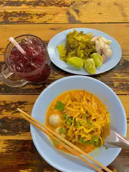 🍜 Mae Sai Khao Soi Restaurant, a famous Khao Soi restaurant that received a Michelin award, rich soup, chewy noodles, reasonable price, not a long wait even though the shop is very crowded.
