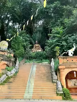 To get there, we climbed a long staircase lined with dragon statues, though there’s also a tram if you prefer. At the top, the breeze was cool and the whole place felt calm and peaceful.