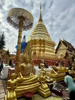 This temple is not just a tourist stop — it’s a living sacred site, deeply rooted in Lanna tradition. Many locals come here to pray, give offerings, and seek blessings. The atmosphere is peaceful and humbling, with panoramic views of Chiang Mai below that make you pause and take it all in. 🌇🙏