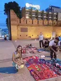 If you're looking for a beautiful place to take pictures in Chiang Mai 🏙️, we recommend coming to Thapae Gate at night. 🌙 In addition to the beautiful lights and dreamy atmosphere, 🎇 the gate itself stands out with its ancient Lanna-style architecture that looks very magical and charming. 📸 It's perfect for taking street photos or portraits in soft light for a great feel. 🧑🎨✨