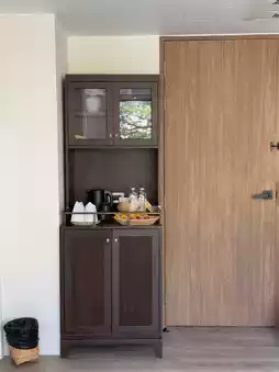 The decor is lovely, soft but not too plain, with a touch of pastel. The room we booked was on the top floor, giving us a private rooftop view of both the moat and Doi Suthep. Breakfast isn't included, but each guest gets a choice of one drink from the cafe. The location is excellent, making it easy to find food and parking available. Be sure to book early, as it fills up quickly due to the high volume of international bookings.