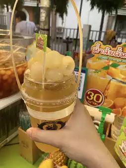 35 baht per glass, but you get a lot of fresh longans. The longan juice is fragrant and not too sweet. Drinking it is very refreshing. It is one of the shops that we miss a lot. We want to go back again.