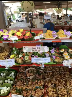 A market that gathers local food from many districts, including Nam Phrik Num, Sai Ua, Gaeng Hang Le, or various local desserts. There are both fresh and handmade food zones. Warm atmosphere like walking in a community