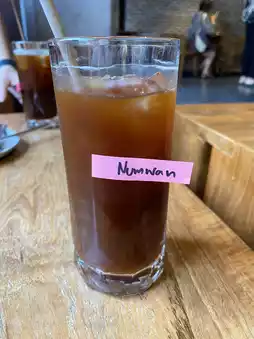 We ordered drip coffee from "Nam Wan" beans that the shop blends itself. The taste is quite smooth, fragrant with fruits, and naturally sweet. Drinking it is very refreshing. In addition, the shop also has many types of coffee beans to choose from, both from mountains in Thailand and abroad.