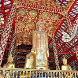 🙏🏽Phra Chao Kao Tue, enshrined in the ordination hall, is a large cast Buddha statue in the Chiang Saen style, made by Lanna and Sukhothai craftsmen. Made of 9 million tamlung metal ("Tue" is a word in Northern Thai, meaning a thousand chang). King Kaew, the 13th king of the Mangrai Dynasty, ordered its construction in 2047.