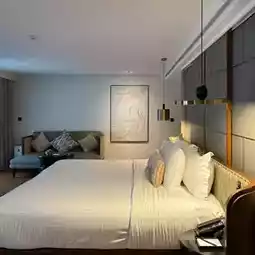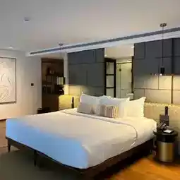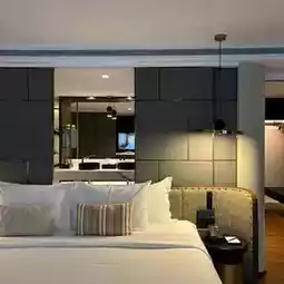 The room is very spacious. The room will be a bit dark. But when using warm lights, it makes the room even more comfortable to sleep. The room is divided into a sitting area, work area, wardrobe, bed and most importantly, the bathroom is very large. There is a bathtub 🛁 and you can open the sliding door to connect to the bed area. You can soak in the bathtub and watch TV at the end of the bed. The room has complete facilities. Free mini bar. The room is very clean. The bed is good. Just living in the room is worth it.
