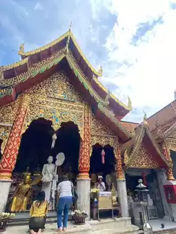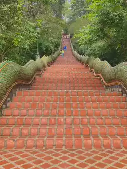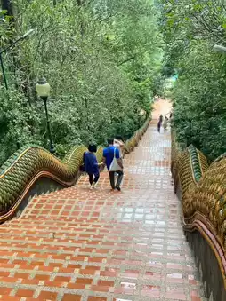 The path leading up to the temple features the Naga staircase, a stunning piece of artistic craftsmanship. The walk is shaded and not too hot, but it can be quite tiring. Upon reaching the top, visitors are greeted with breathtaking architecture and a panoramic viewpoint offering a full view of Chiang Mai city. The scenery is absolutely beautiful, and the atmosphere is incredibly serene.