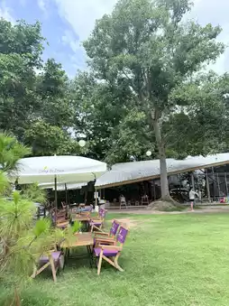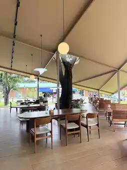Anyone who visits Chiang Mai must pin this shop. Because the shop is really beautiful. The design is very eye-catching with a unique roof shape and green lawn. Driving past it is very eye-catching. Convenient parking, coffee and drinks are not expensive. The outside and inside are beautifully decorated. There is a playground that you can really play. Everything is good. Let me whisper that this shop is the same branch as Living a dream at Ang Kaew in Chiang Mai University. I guarantee that it is really good. I like it very much. Especially in the rainy season, the green lawn is very comfortable.