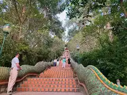 Located at an altitude of 1035 meters, Wat Phra Singh Temple is one of Chiang Mai's iconic landmarks. You can visit this site by taking a Grab or a Songthaew. For those who find climbing stairs challenging, there is a cable car available to reach the top. Please note that entry to the temple is only allowed if you wear clothing that covers your knees.