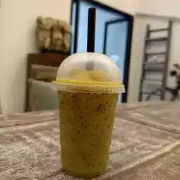 The shop opens from 07:00 - 17:30. It's perfect for those who want to sit and sip a morning or afternoon drink. Today, I tried the passion fruit smoothie 🥤. It tastes very refreshing, with a nice sweet and sour flavor. It has a natural passion fruit aroma. Drinking it makes you wide awake.